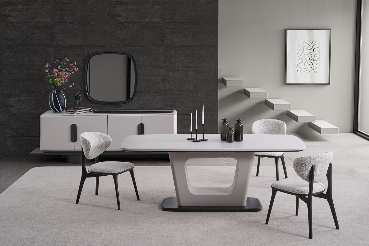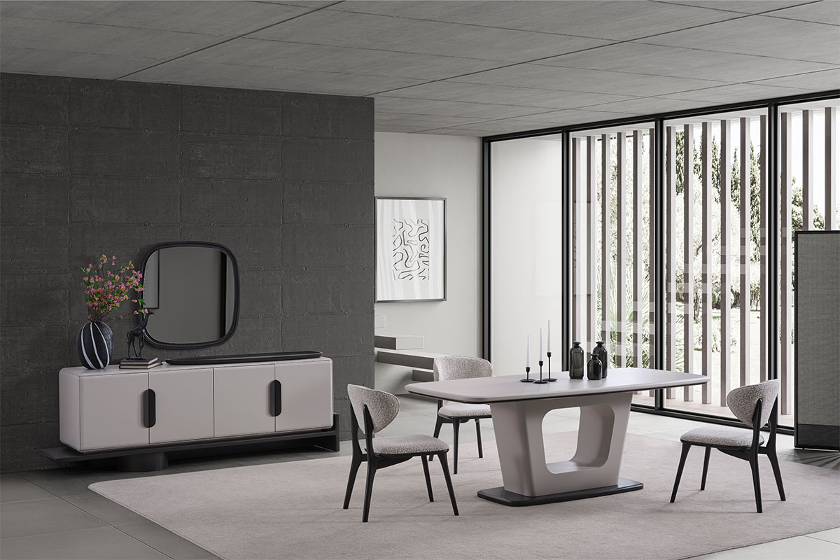 Yemek odası koleksiyonlarımız, şıklık ve işlevselliği dengeli bir biçimde bir araya getiriyor.